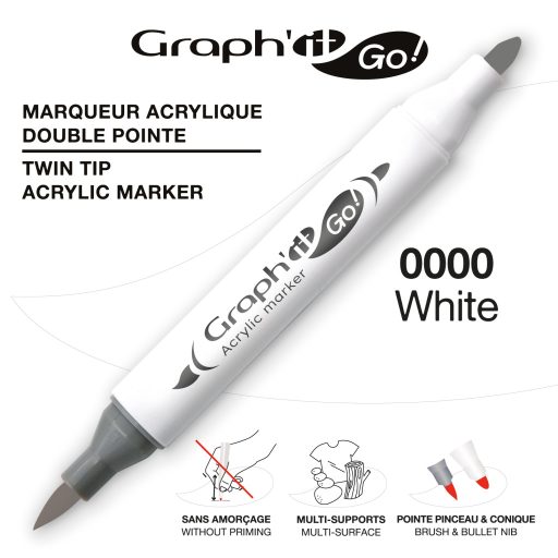 Nincs több unalmas alapozás! A GRAPH'IT GO egy kéthegyű akril marker, amely használatra kész. Azonnal használható felrázás vagy alapozás nélkül. Sokoldalú, számos felületen tapad (papír, fa, fém, üveg, szövet stb.).