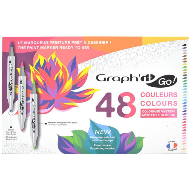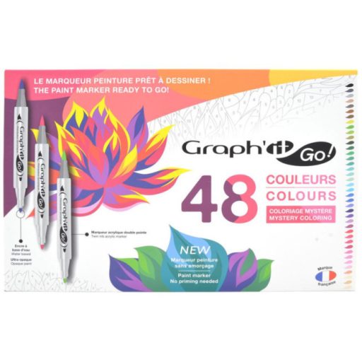 A GRAPH'IT GO! filctoll tökéletes ehhez a tevékenységhez, és átlátszatlan tintájának köszönhetően könnyen elfedhetjük a számokat. Ez a készlet 48 gondosan kiválasztott színt tartalmaz, amelyek 4 tálcában, egyenként 12 kivehető filctollal helyezkednek el a könnyű hozzáférés érdekében.