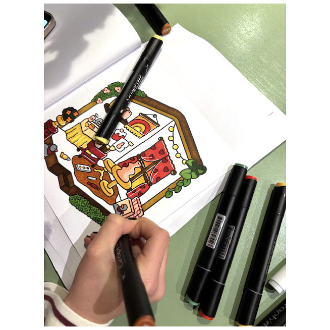 A GRAPH'IT markerek kettős hegyükkel és gyorsan száradó tintájukkal simán siklanak a papíron. Enyhén átlátszó tintáik lehetővé teszik a tónusok rétegezését és finom színátmenetek létrehozását, miközben minden részlet felett kontrollt biztosítanak.