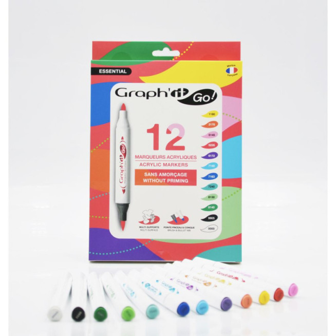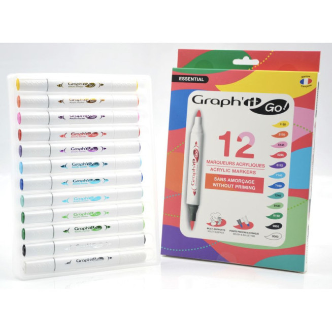 Fedezd fel a 12 darabos GRAPH'IT GO! akril marker ALAPSZÍNEK készletet, amely tökéletes a kreativitásod határtalan szabadjára engedéséhez.