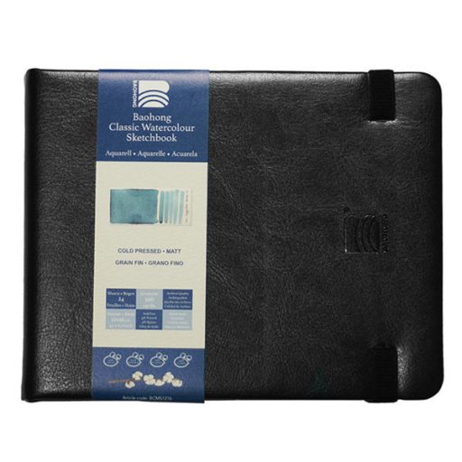 A Baohong Classic akvarell vázlatfüzetek stúdió minőségűek, 100% pamut akvarellpapírokat tartalmaznak. A füzetek fűzöttek, borítújuk műbőrből készült, egy gumipánttal zárható.