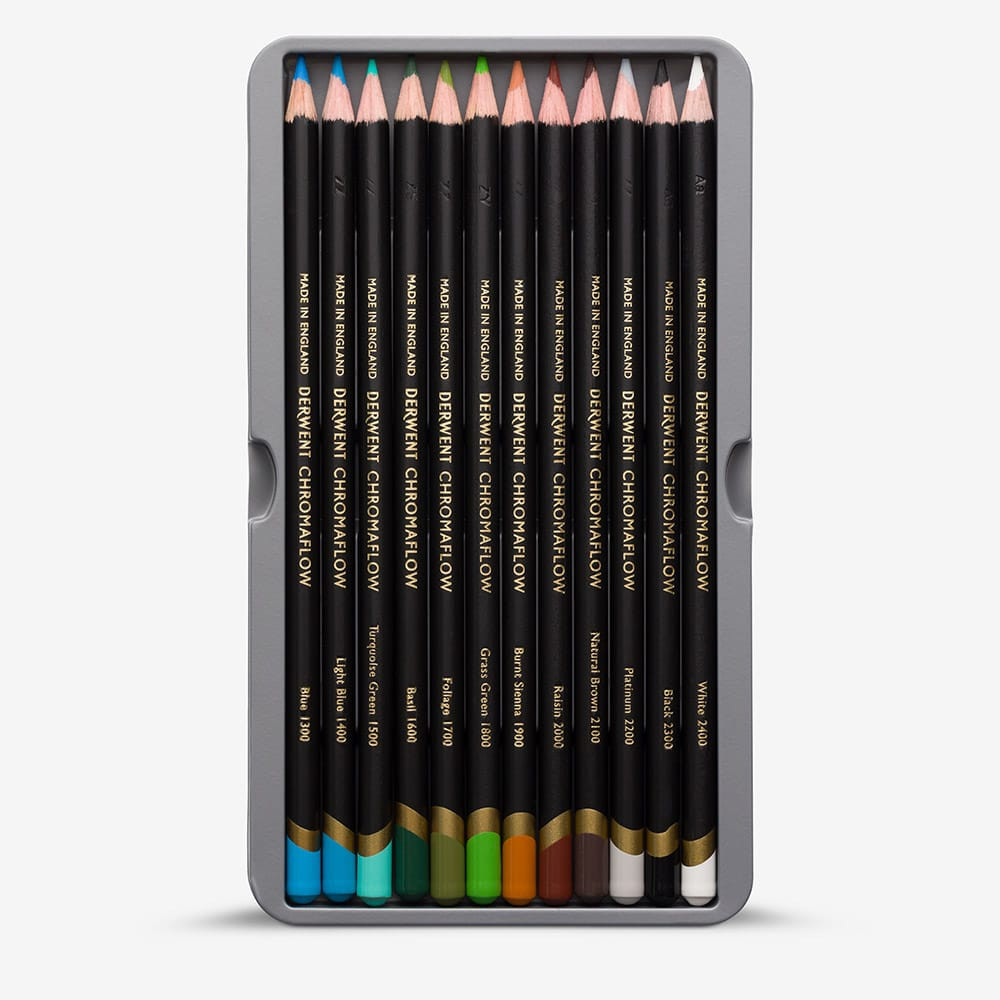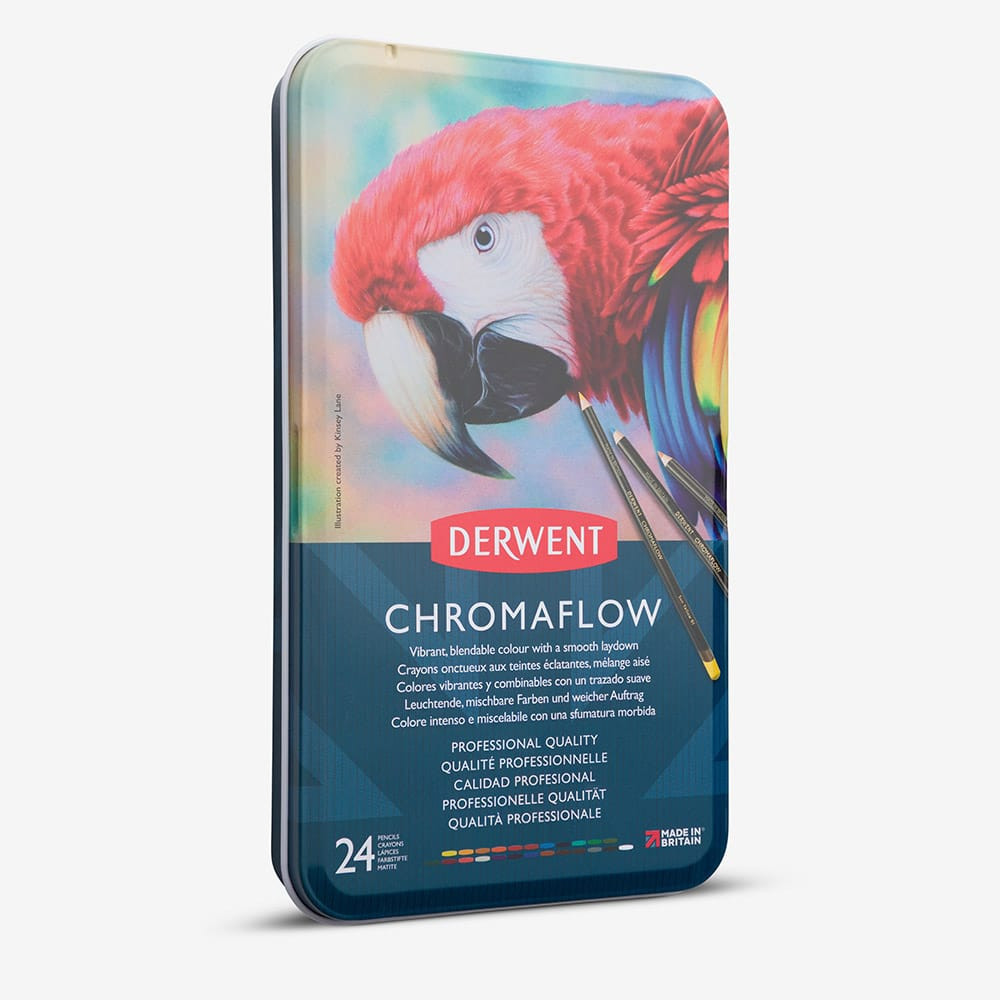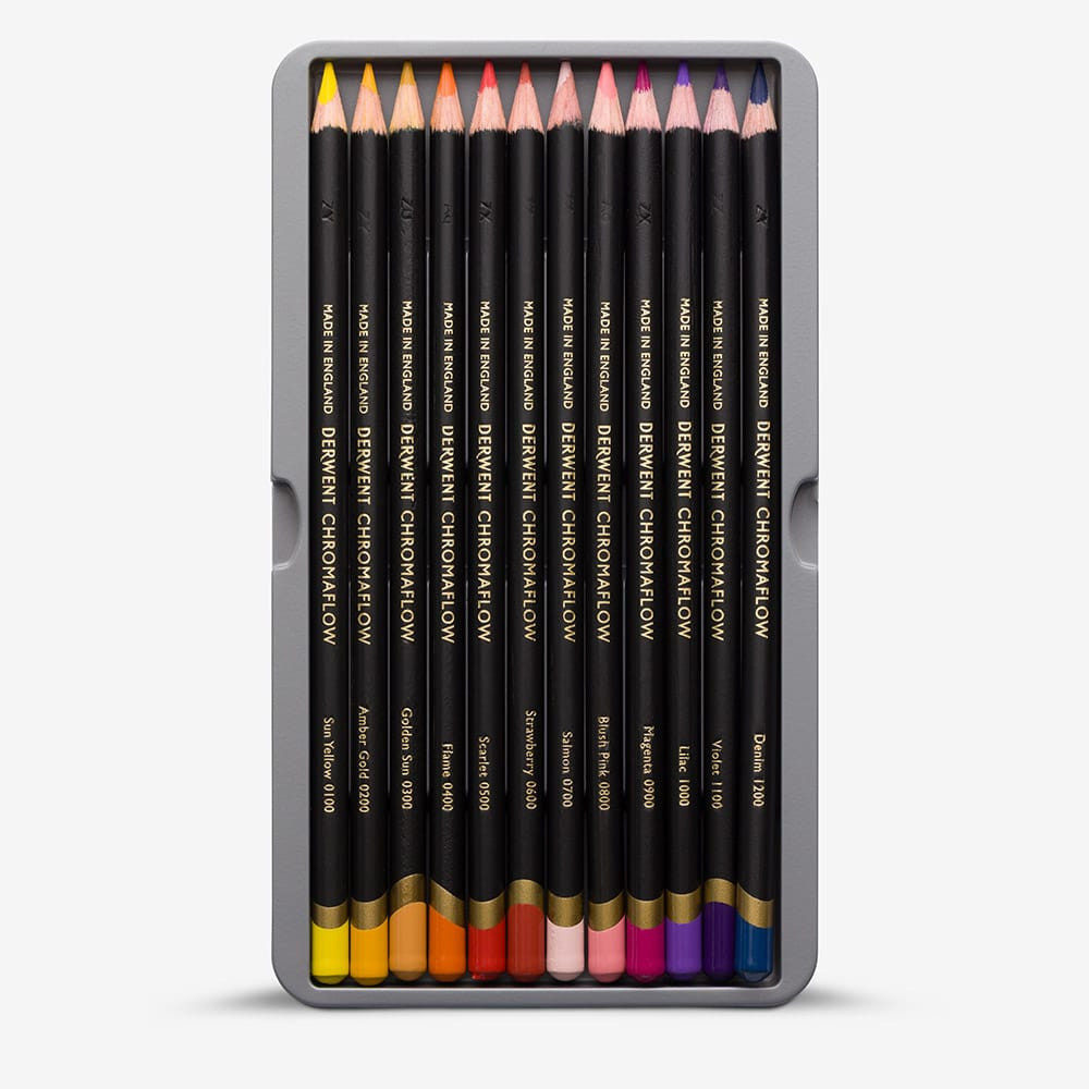 A Derwent Chromaflow színes ceruzák merész, élénk rétegezést biztosítanak a gazdagon pigmentált 3,5 mm-es ceruzabélnek köszönhetően, amelyek elég strapabíróak ahhoz, hogy ellenálljanak a lelkes használatnak és az ismételt hegyezésnek.