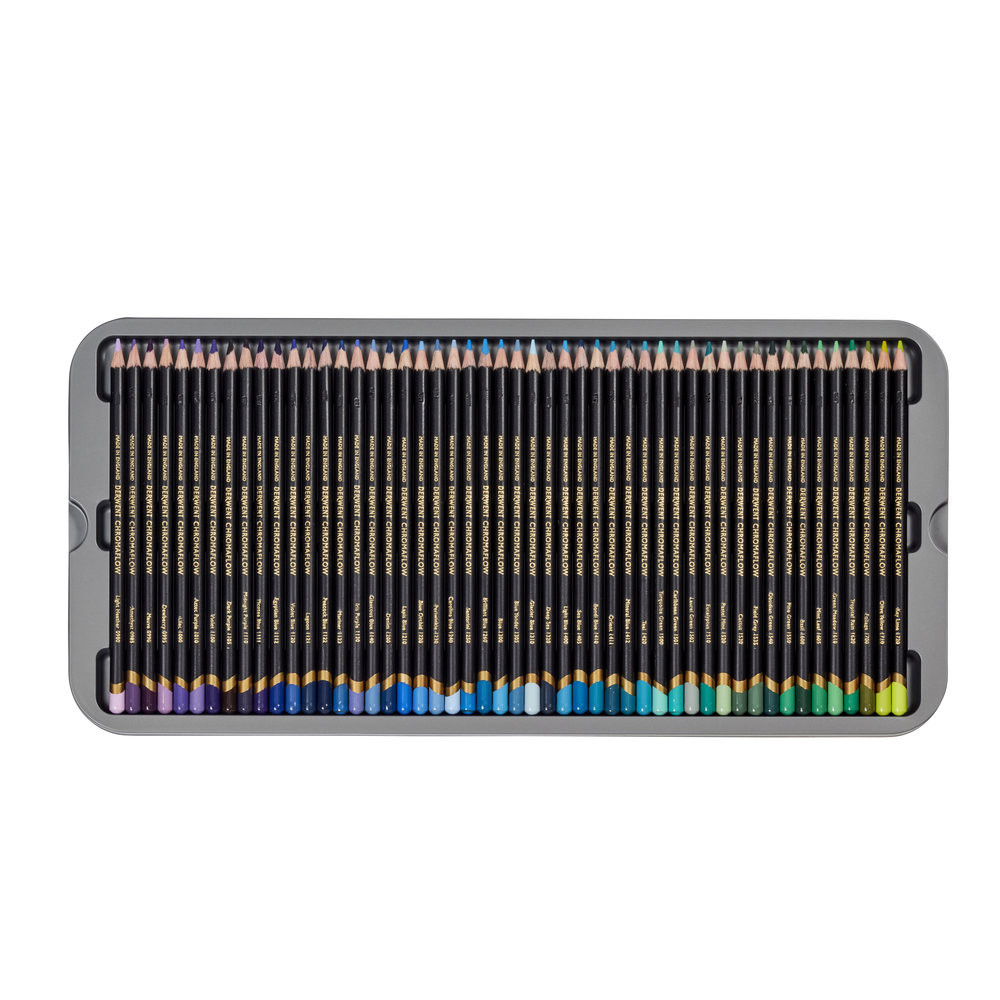 A Derwent Chromaflow színes ceruza puha, erősen pigmentált, amelynek hála vibrálóan mutat akár sötét papíron is. Krémes állaga miatt egységesen és gyorsan fel tudjuk vinni a papírra. Nehezen törik, könnyen keverhető, rétegezhető és árnyékoláshoz is tökéletes. Könnyebben radírhozató, mint más színes ceruzák, de teljesen azért ez sem visszaszedhető.