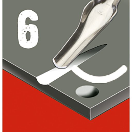 No. 3 - Egy olyan kés, amellyel könnyen kimetszhetünk akár 2 mm-es mélységben is. Ideális egyenes vonalakhoz. Kiváló választás Softblock metszéséhez, linónál viszont vigyázni kell, hogy ne vágjunk vele túl mélyre.