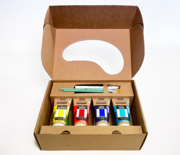 - 8 x 60 ml Origin akrilfesték (kadmium citrom sárga, cadmium piros, ultramarin kék, türkiz kék, permanens világos zöld, természetes sziéna, titánfehér, mars fekete)