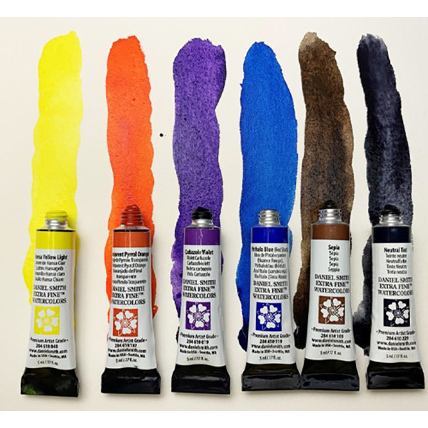 A Daniel Smith-nek a világon egyedülállóan több, mint 250 színből áll a teljes színskálája, amelyből ebben a készletben 6 színt találsz. És hogy miért is kell ennyi szín? Mert a professzionális művészeknek szükségük van a választás lehetőségére, hogy megtalálják a számukra legtökéletesebbet, amelyek tulajdonságaikban is megfelelnek a szükségleteiknek. Ezeket a festékeket úgy alkották, hogy találkozzon és felülmúlja az ipar standardját. Minden adagot analizálnak a teljesítményük minőségében - fényállóság, színérték, színező erősség, tisztaság, élénkség, részecske méret, sűrűség és viszkozitás alapján. Ezzel is garantálják, a lehető legkiválóbb és állandó minőséget.