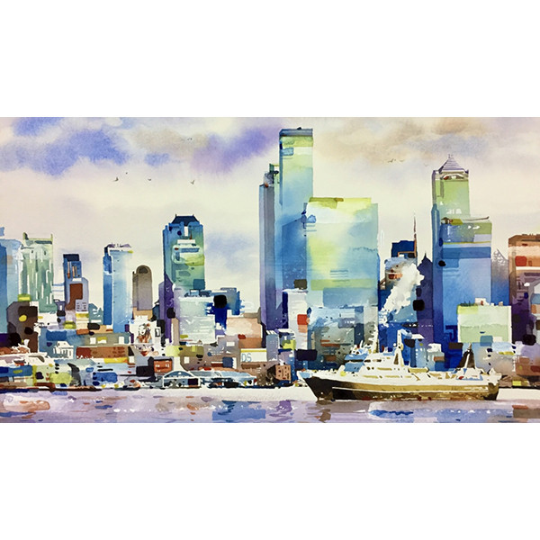 Ez a készlet a tökéletes kombinációja a meleg és s hideg színeknek. Szeretem a Lemon Yellow és a Pyrrol Orange melegét, a hűvös Ultramarine Blue és Quinacridone Purple blokkokkal együtt, hogy éjszakai városképet fessek. A Burnt Umber megmutatja a régi épületek történelmi részletei, míg az Alizarin Crimson kifejezi a város lelkesedését, és meglepetését.