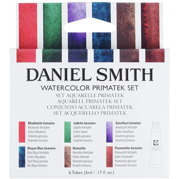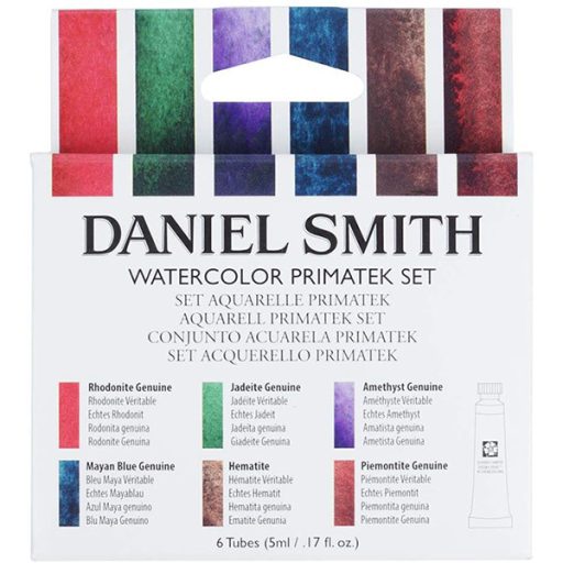 A Daniel Smith márkának már a kezdetek óta fontos volt az innováció. Erre az egyik legjobb példa a PrimaTek széria festéke, amelyek igazán különlegesek, hiszen természetes ásványkövekből készülnek. Ezeket az ásványokat a kibányászásuk után pigmentté, majd gumiarábikum segítségével művészi festékké őrlik. Fejezz ki több textúrát és mélységet ezekkel az izgalmas festékekkel. Gyönyörűen granuláló és enyhén csillogó akvarellek, a bennük lévő kristályoknak köszönhetően. Műveidnek mágikus hangulatot és egyedi kinézetet adnak. Könnyen keverhetőek, nem csak a PrimaTek széria festékeivel, hanem akár az Extra Fine akvarellfestékkel is. Nehezebbek, mint a hagyományos akvarellfestékek, így megülnek az hidegen préselt akvarellpapírok mélyedéseiben, ezzel is gyönyörű, különleges hatást létrehozva.