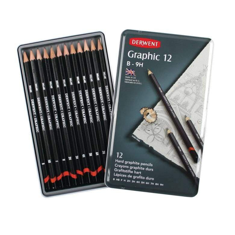 A Derwent grafit ceruzái széles skálán, 20 különböző keménységi fokozatban érhetőek el, a finom és éles 9H-tól a puha és könnyen elkenhető 9B-ig. Ideális a finom, részletgazdag illusztrációkhoz, a sötét árnyékokhoz és a különböző textúrák kidolgozásához. Széleskörben elterjedt a tervezők, művészek és illusztrátorok körében egyaránt. H a keménységet (hard) a B pedig a feketeséget (black) jelöli a ceruzán, tehát minél nagyobb a betű elött a szám annál keményebb vagy annál feketébb a ceruza. A puha B ceruzákkal az árnyékokat és a textúrákat a keményebb H-s ceruzákkal pedig a finom vonalakat és a részleteket tudod kidolgozni.