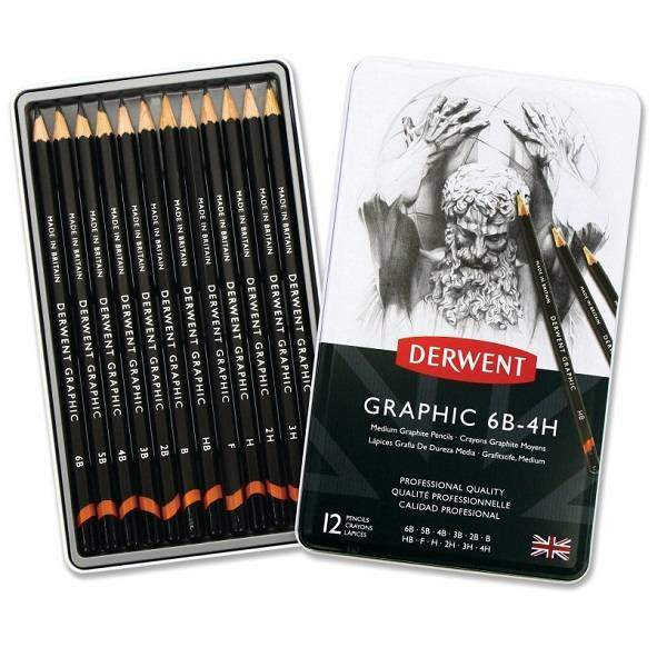 A Derwent grafit ceruzái széles skálán, 20 különböző keménységi fokozatban érhetőek el, a finom és éles 9H-tól a puha és könnyen elkenhető 9B-ig. Ideális a finom, részletgazdag illusztrációkhoz, a sötét árnyékokhoz és a különböző textúrák kidolgozásához. Széleskörben elterjedt a tervezők, művészek és illusztrátorok körében egyaránt. H a keménységet (hard) a B pedig a feketeséget (black) jelöli a ceruzán, tehát minél nagyobb a betű elött a szám annál keményebb vagy annál feketébb a ceruza. A puha B ceruzákkal az árnyékokat és a textúrákat a keményebb H-s ceruzákkal pedig a finom vonalakat és a részleteket tudod kidolgozni.