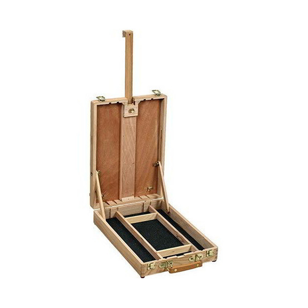 A DOM asztali állvány erős, fából készült, festődobozként is használható. Praktikus, hiszen ideális nem csak vászonhoz, hanem akár papírhoz is. Maximum 60 cm magas vászonhoz alkalmaz. Kinyitható, állítható döntésszöggel, hogy mindenki kényelmesen, saját igényei szerint tudja használni. Festődobozként tárolhatod benne kedvenc ecseteid, festékeid, palettáid, egyéb kiegészítőid is. Ez kifejezetten hasznos, ha sokat utazol, hiszen így mindig egy helyen, kényelmesen szállíthatod eszközeid.