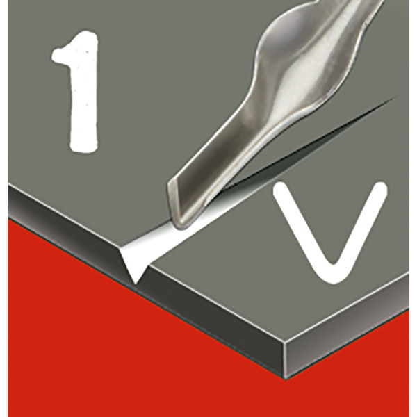 No. 4 - Egy széles, lekerekített 'V' alakú kés, kb. 3 mm-es metszésekhez. Kiváló választás érzékeny részletek, és vékony vonalak metszéséhez, amelyek nagyobb üres felületen találhatóak.
