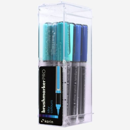 Karin Brushmarker PRO ecsetfilc 12 db-os készlet - Kék árnyalatokA Karin Brushmarker PRO markerei a szuper tartós és kiváló minőségű, hajlékony japán nylon ecsethegynek köszönhetően ideálisak a hand letteringhez. 60 különböző színben érhető el. Az ecsetfilcek 2,4 ml nem toxikus, intenzív festéket tartalmaznak. A speciális gyártási technológiának köszönhetően a festék színének intenzítását az utolós cseppig megőrzi. A festék vízalapú, így a színek könnyedén keverhetőek, világosíthatóak és átmenetes hatásokat lehet vele elérni, ha a különböző színű filcek hegyét összeérintjük.