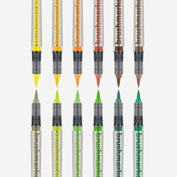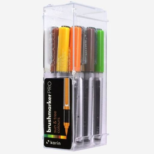 Karin Brushmarker PRO ecsetfilc 12 db-os készlet - Természet színeiA Karin Brushmarker PRO markerei a szuper tartós és kiváló minőségű, hajlékony japán nylon ecsethegynek köszönhetően ideálisak a hand letteringhez. 60 különböző színben érhető el. Az ecsetfilcek 2,4 ml nem toxikus, intenzív festéket tartalmaznak. A speciális gyártási technológiának köszönhetően a festék színének intenzítását az utolós cseppig megőrzi. A festék vízalapú, így a színek könnyedén keverhetőek, világosíthatóak és átmenetes hatásokat lehet vele elérni, ha a különböző színű filcek hegyét összeérintjük.