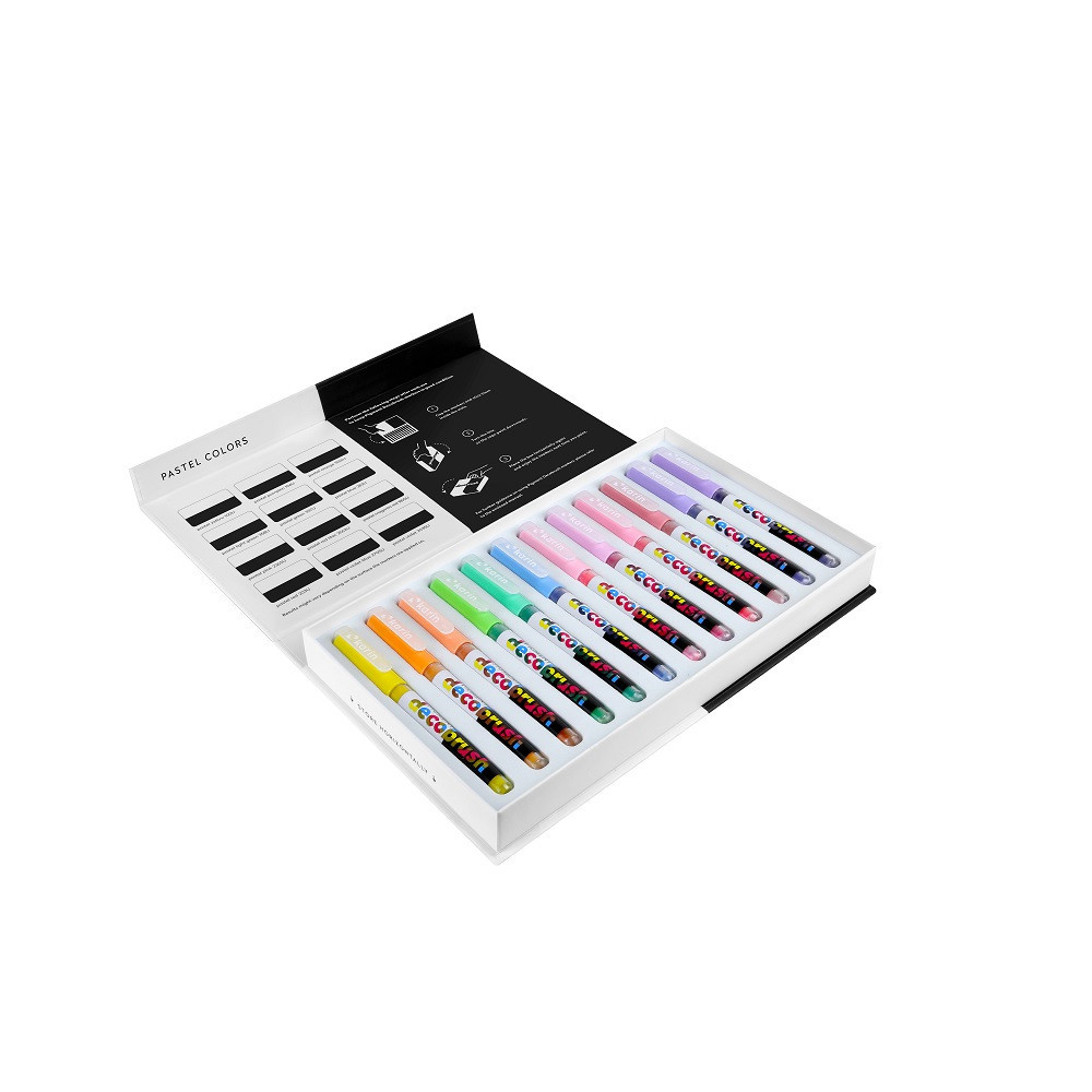 A tökéletes fedés és a különleges színek biztosítják, hogy egyedi feliratokat készíthess velük. Az ecsetfilcek 2,4 ml akril, nem toxikus, szerves alapú festéket tartalmaznak. A hosszú élettartamért a filceket mindig vízszintesen tárold!