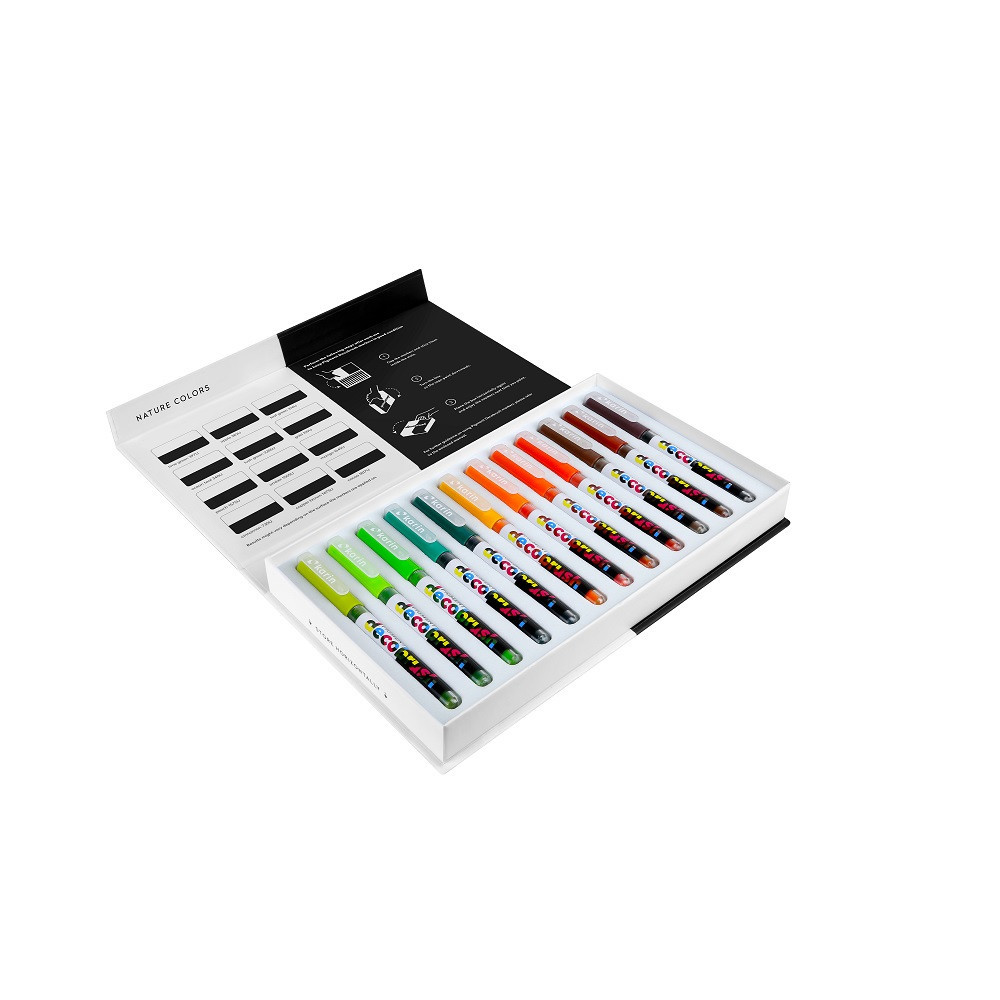 Pigment DecoBrush teljes fedést biztosító akrilfestéket tartalmazó ecsetfilc. Használat előtt alaposan rázd fel, míg a festék egységes nem lesz! A különböző színek egymással könnyen keverhetőek. Látványos színátmeneteket érhetsz el, a különböző színű filcek hegyének összeérintésével vagy közvetlenül a papíron. Az