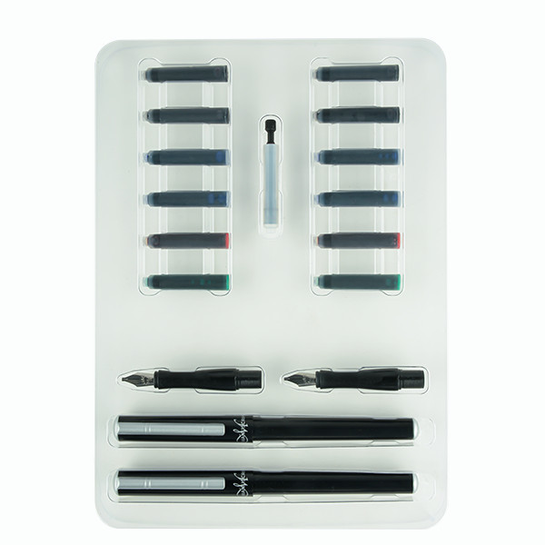2 töltőtoll testet, és 4 különböző méretű tollhegyet hozzájuk, amelyekkel könnyen gyakorolhatod a különböző stílusokat. A tanuláshoz és a betűtípusok bemutatásához segítségedre lesz a