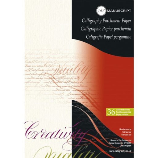 A Manuscript Pergament papírja 90 g-os vastagsága és textúrája is tökéletes választás a kalligráfiához. Nem üt át rajta a tinta. Remek választás gyakorláshoz is, ugyanakkor bátran ajánljuk olyanoknak, akik már jártasabbak a kalligráfia világában, hiszen ez kiválóan használható kész kalligrafikus képekhez, meghívókhoz, oklevelekhez. A papírok savmentesek, krémes színűek és rendkívül tartósak. Egy tömbben 36 lap található, A4-es méretű.