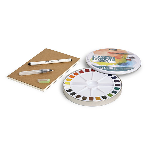 A Pébéo Fine akvarell kezdőkészlet ideális választás lehet mindenkinek, aki most szeretne megismerkedni az akvarellfestés világával! A készlet a kiváló minőségű akvarellfestéken kívül olyan hasznos kiegészítőket is tartalmaz, mint 1 db tűfilc, 1 db vízzel tölthető ecset és 1 db akvarell vázlattömb.