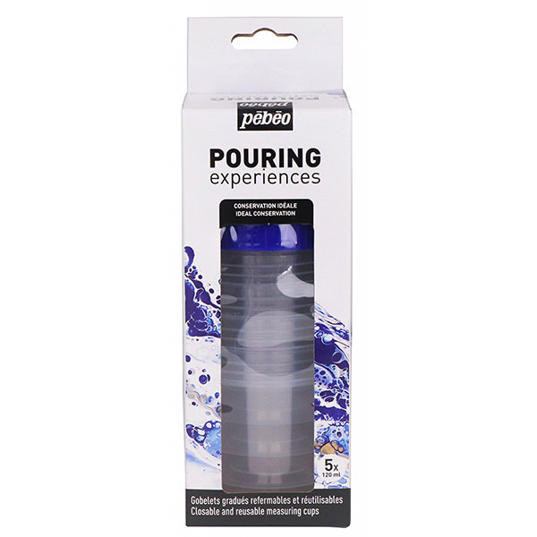A Pébéo 120 ml-es mérőpoharai praktikus kiegészítők akrilfolyatáshoz technikához. Kupakkal is rendelkeznek, könnyen tisztíthatóak, így sokszor újra használhatóak. Ideális a festék tárolására, keverésre, a festékek és a médiumok arányának kimérésére is.