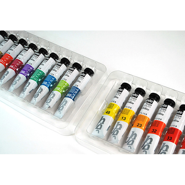 A hagyományos színeken kívül tartalmaz metál, fluo és irizáló színeket is. Az irizáló amelyek különleges fényüknek hála máshogy mutatnak világos és sötét alapon. Ezek tökéletesek különleges hatások elérésére.