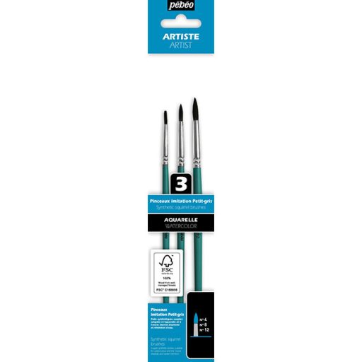 Pébéo szintetikus ecsetkészlet, akvarellhez - 3 db, kerek