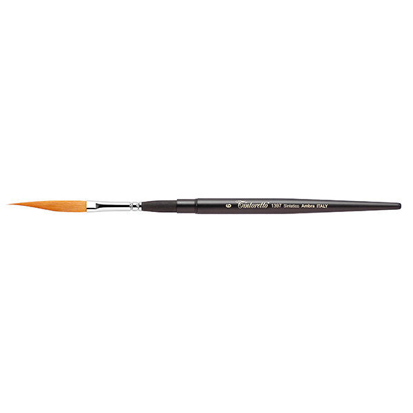 A Tintoretto 1397-es szériájú ecsetei úgynevezett Amber szintetikus szálakból készültek. Ezek igazán hajlékonyak, kard formájának köszönhetően pedig ideálisak hosszú, vékony, precíz vonalak húzásához. Különösen előnyös használata botanikus formák, hajszálvékony vonalak festéséhez. Összecsukható utazó ecset, így könnyen, biztonságosan szállíthatod.