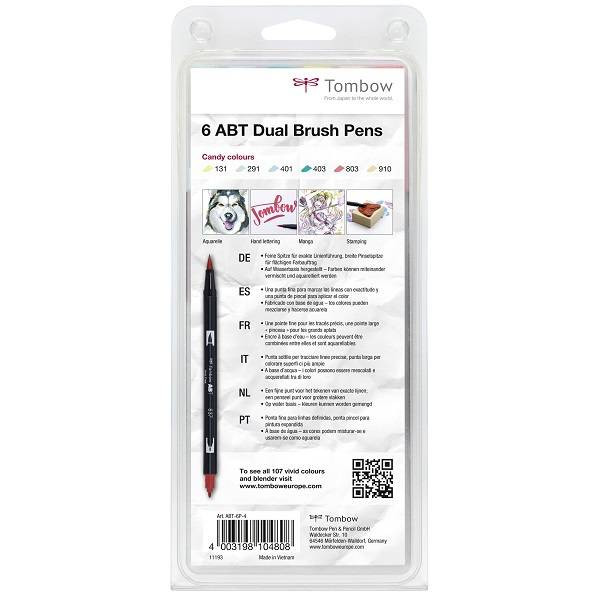Tombow ABT Dual Brush Pen - Candy Colours - kéthegyű filctoll, 6 db-os készlet: