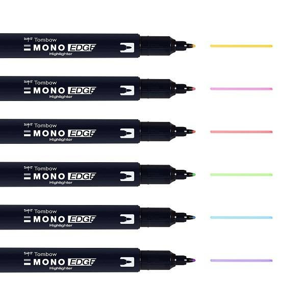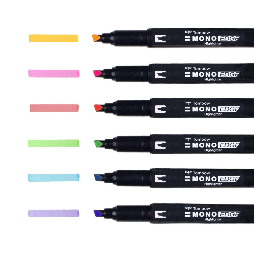 A Tombow Mono Edge két végének köszönhetően több, mint egy egyszerű szövegkiemelő. A 3,8 mm vastag vágott filcvég speciális műanyag védelmet kapott, így vonalzó és sablonok mellett is bátran használhatjuk anélkül, hogy a hegy megsérüljön. A másik vége egy 0,8 mm vastag filc, mellyel könnyű akár jegyzetelni, akár aláhúzni. Az élénk színek kiválóak füzetek, noteszek, bullet journalek, egyéb naplók és jegyzetek dekorálásához.